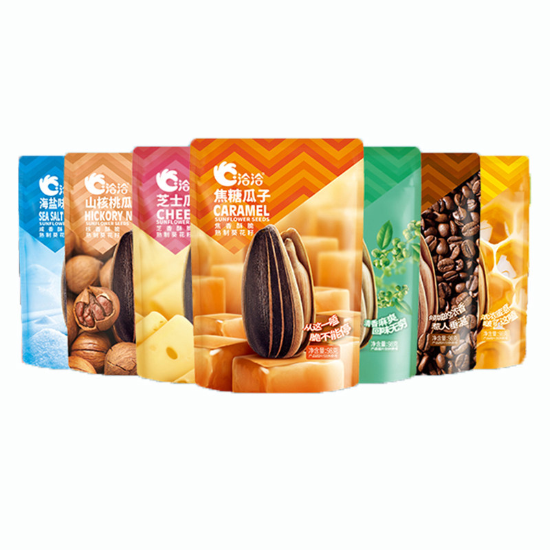 Qiaqia Caramel Melon Seeds 98g * 5 Bags of Chacha Pecan Flavor Rattan Pepper Flavor Sea Salt Flavor Sunflower Seed Dormitory Snacks