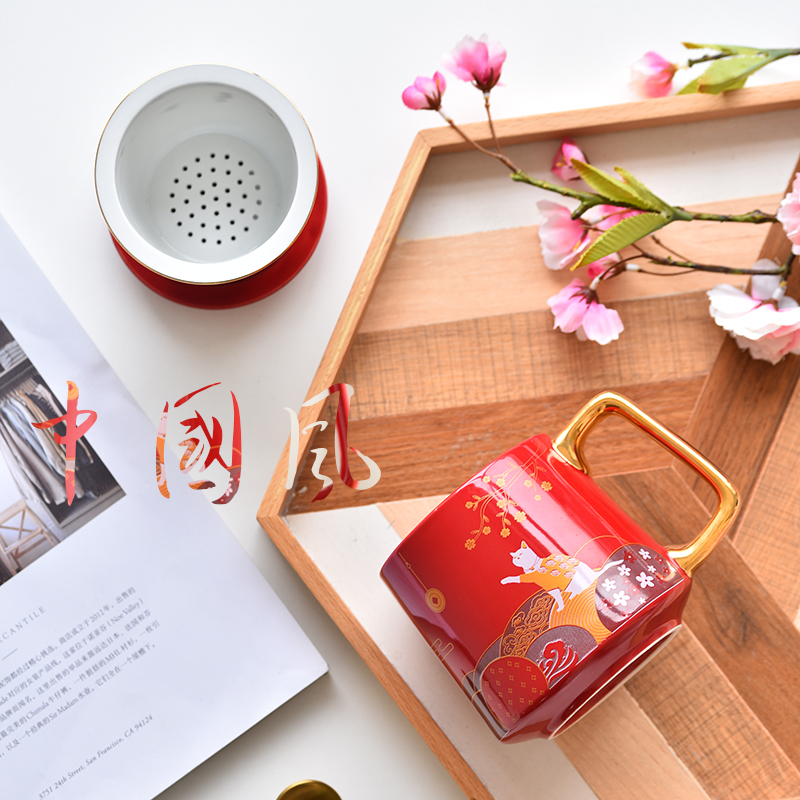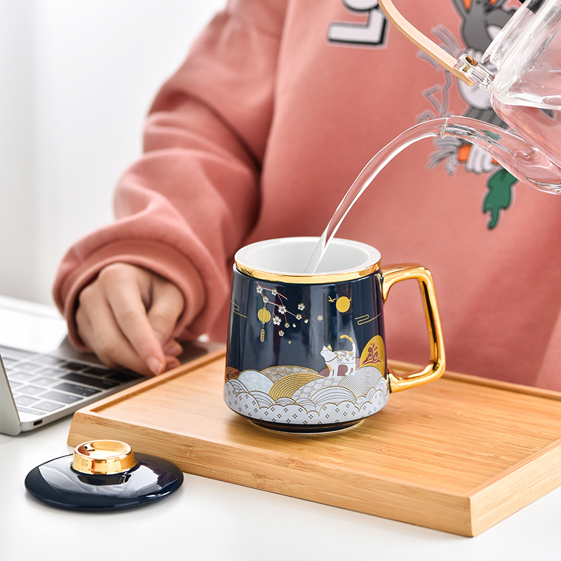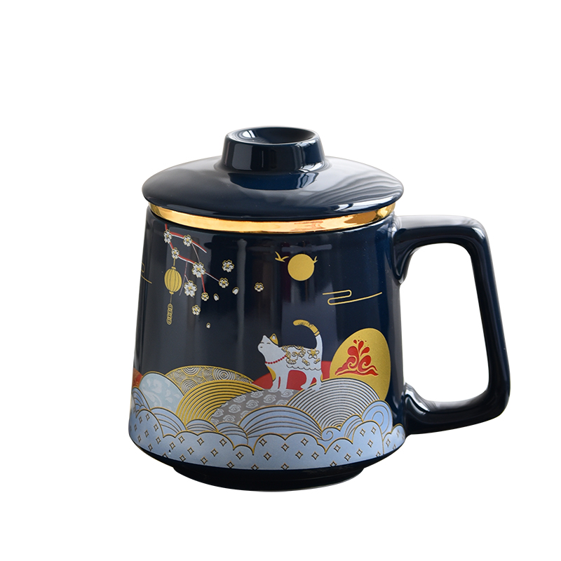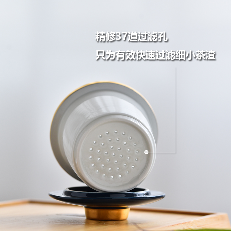 Blue Glazed Pottery Porcelain Cup With Lid Tea Water Separation Tea Cup With large Capacity Mark Cup Office Tea Tea Cup