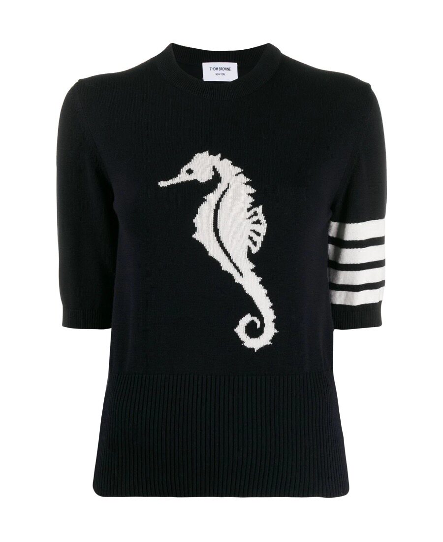 (Eina Day) Thom Browne 20 spring and summer male and female sea horse motif knitted hooded sweatshirt