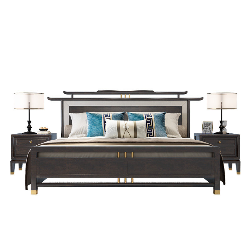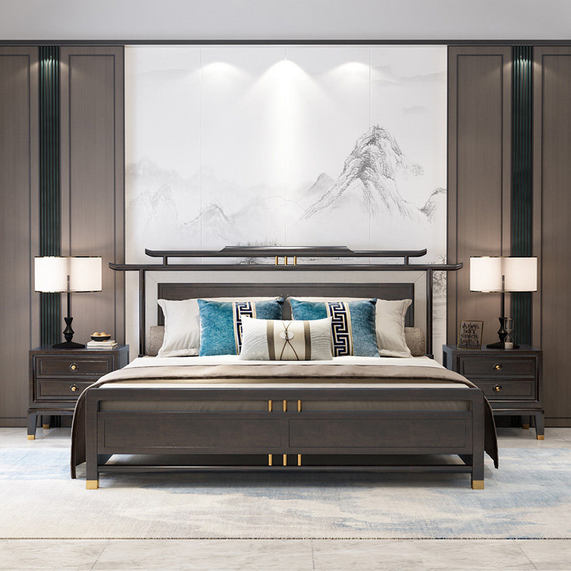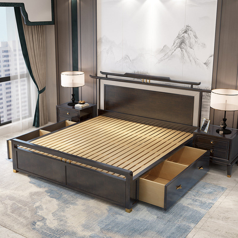 New Chinese full solid wood bed modern Chinese style 1 5 m 1 8 m 2 0 m storage high box bed master bedroom with double bed-Taobao