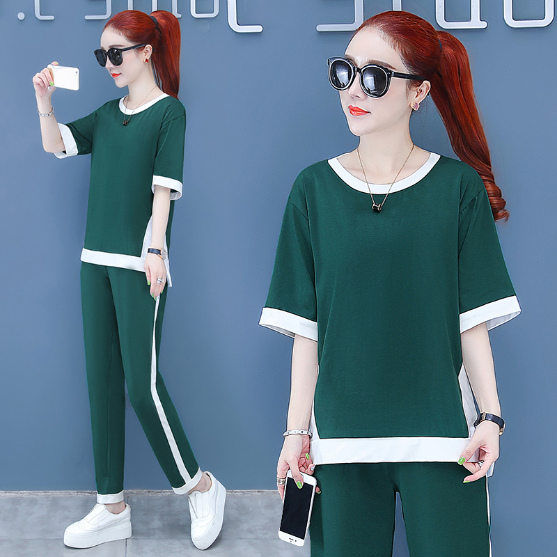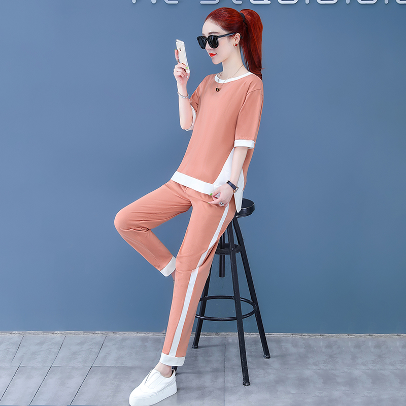 Pure cotton sports casual suit female 2021 new style Western style short-sleeved nine-point pants loose fashion two-piece summer