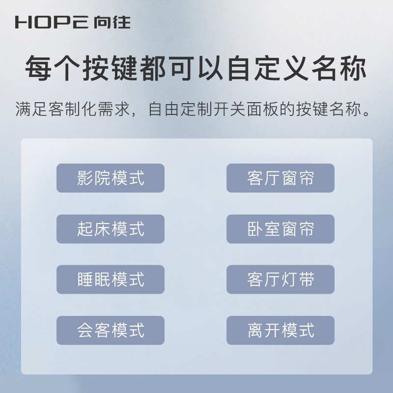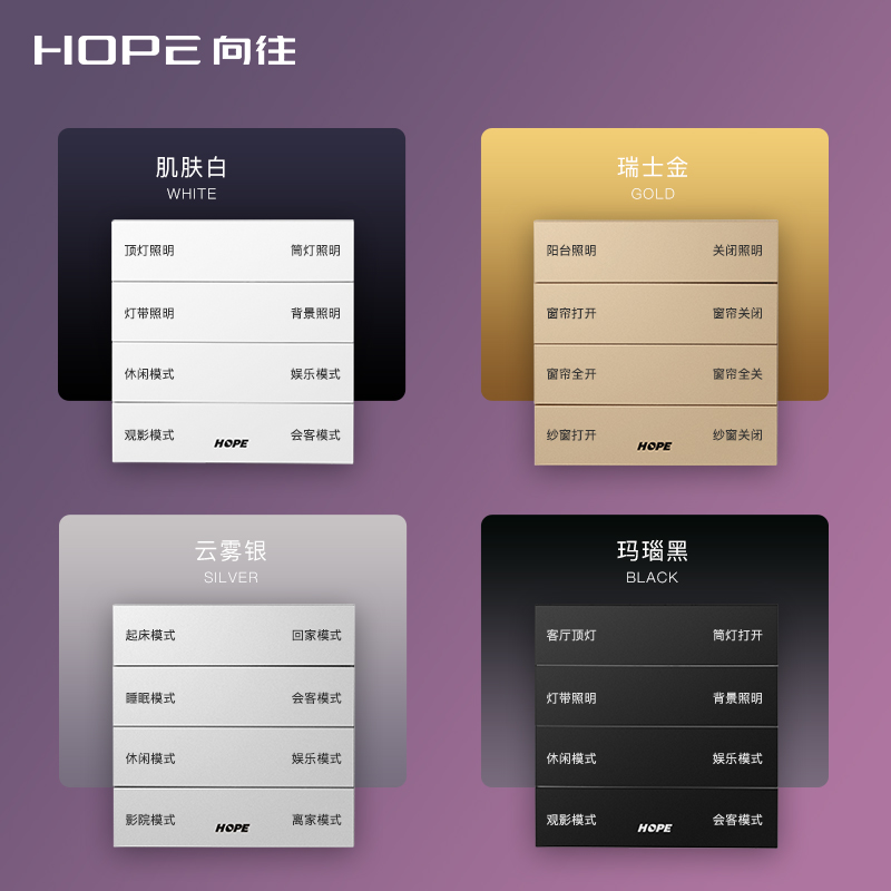 K8 switch panel (silver) K8 switch panel (white) K8 switch panel (gold) K8 switch panel (black) Zigbee signal (need to be equipped with gateway) Panel text support customization Can be out of the program
