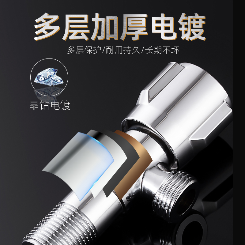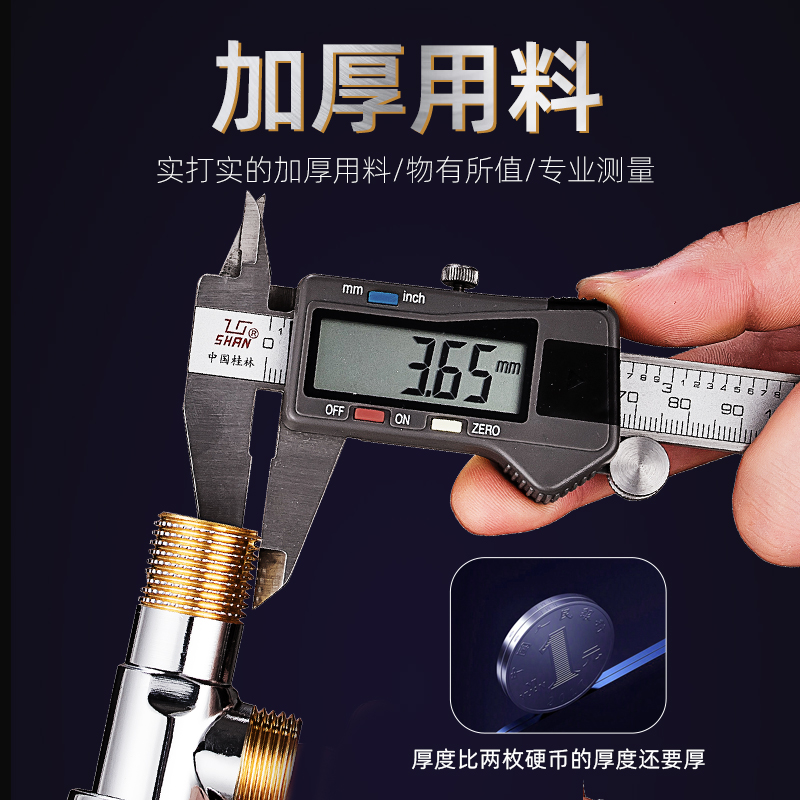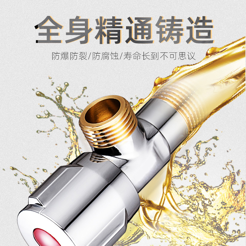 Triangular valve full copper hot and cold water tee-in-two-out angle valve double switch 304 stainless steel water heater double cut