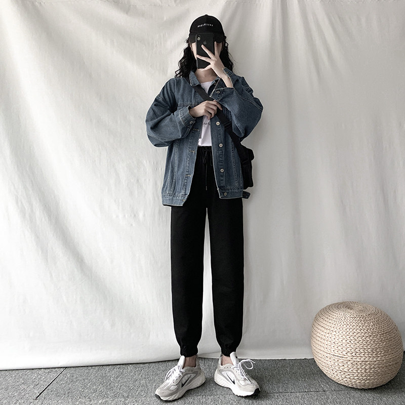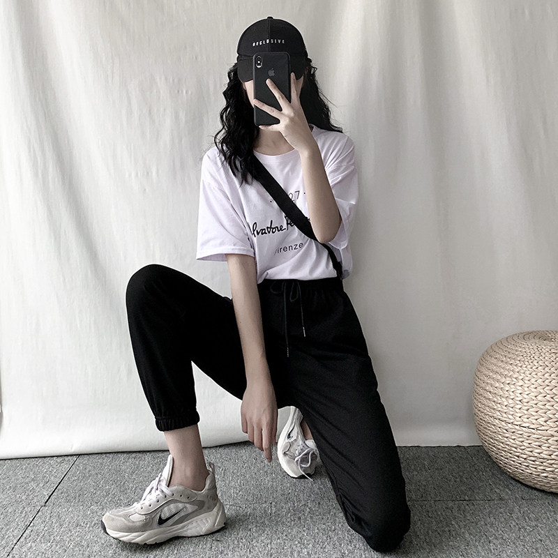Sports pants female loose beam pants in spring and fall 2020, a thin high waist and black nine - point casual pants