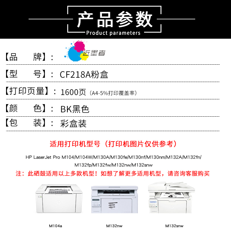 Applicable CF218A powder box M132a selenium drum M104a w print meter machine HP18A ink cartridge nw fw fn fp snw easy to add powder sundrum 19A CF