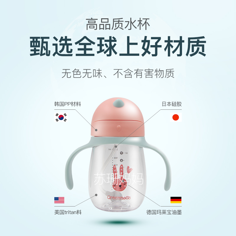 Japan greennose green nose baby learning drinking cup Children's anti-choking baby drinking water with handle straw cup