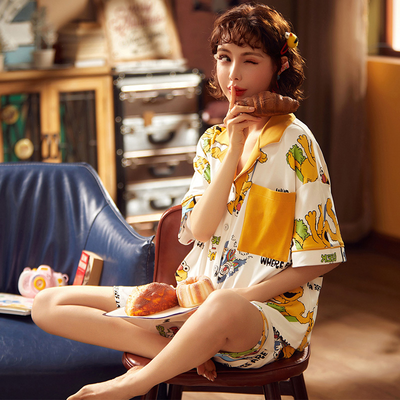 Summer Pyjamas Woman Pure Cotton Cute Sunflower Sweet Princess Wind Doll Collar Short Sleeves Two Sets Home Suit Suit