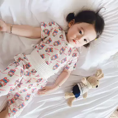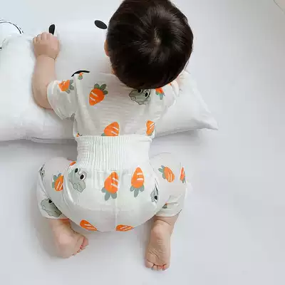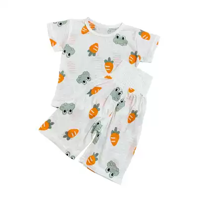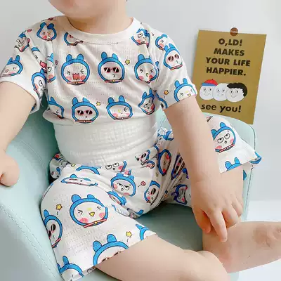 Summer Baby Home clothing set thin boy girl bamboo fiber pajamas children high waist belly air conditioning clothing five-point pants