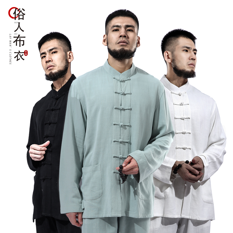2023 new cotton linen dress Men's suit Two sets of spring and autumn Chinese wind long sleeve blouses for elderly folk-Taobao