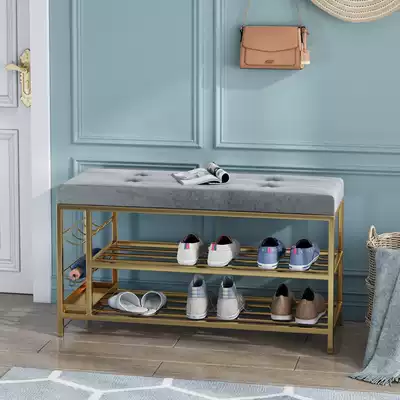 Shoe stool at home door can be seated shoe cabinet umbrella stand integrated simple home iron soft bag cushion wearing shoes stool