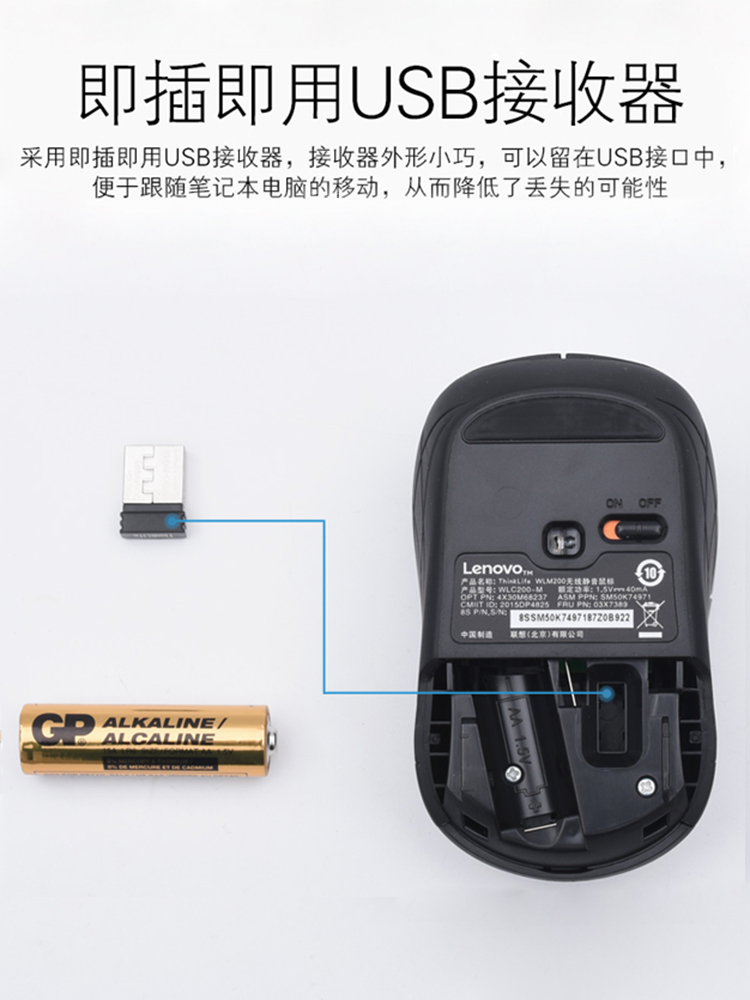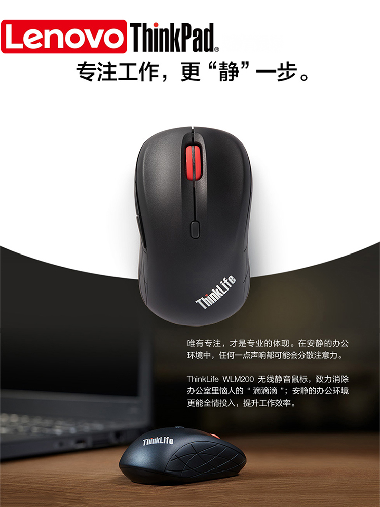 Lenovo ThinkPad Wireless mute mouse notebook desktop All home office business silent WLM200 low noise small slip mouse WLM210 dual-mode Bluetooth