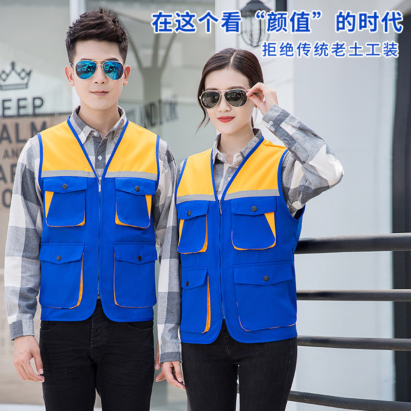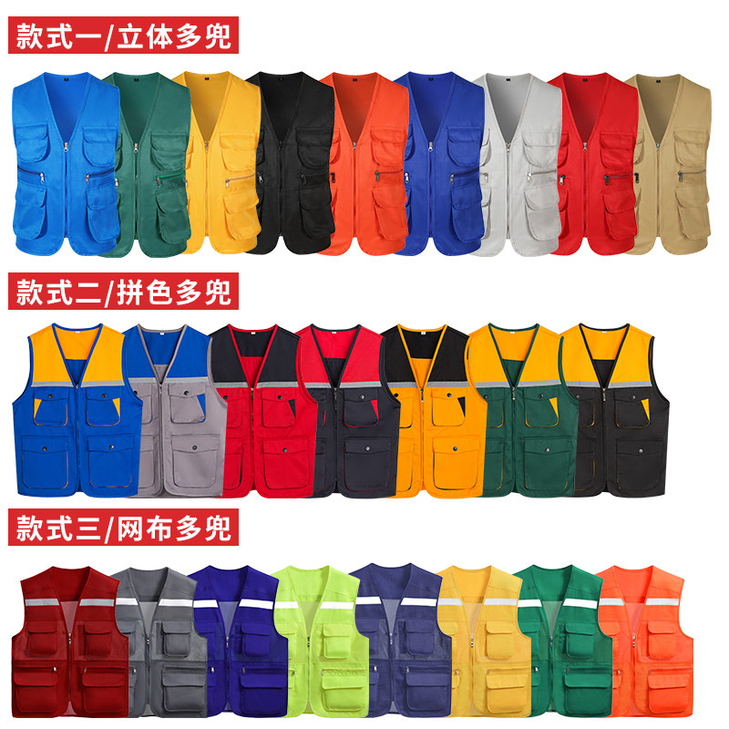 Multi-pocket tooling vest custom printed logo overalls photography fishing labor insurance vest volunteer volunteer clothing