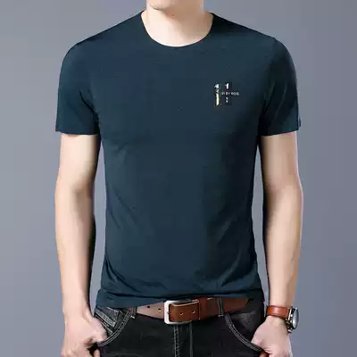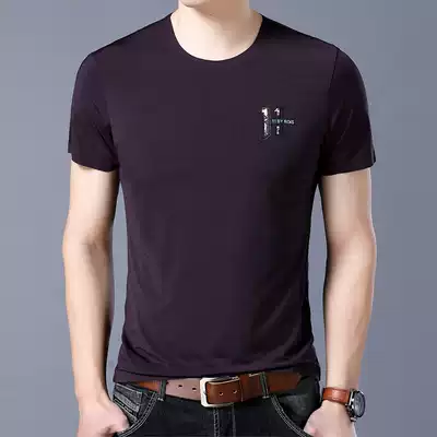 Mulberry silk short sleeve T-shirt men's summer new round neck slim slim Thin Ice Silk casual middle-aged dad silk shirt