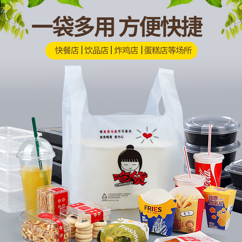 Disposable Packaging Bag Takeaway Food Shopping Hand Thickened Pizza Fried Chicken Plastic Bag Wholesale Custom LOGO