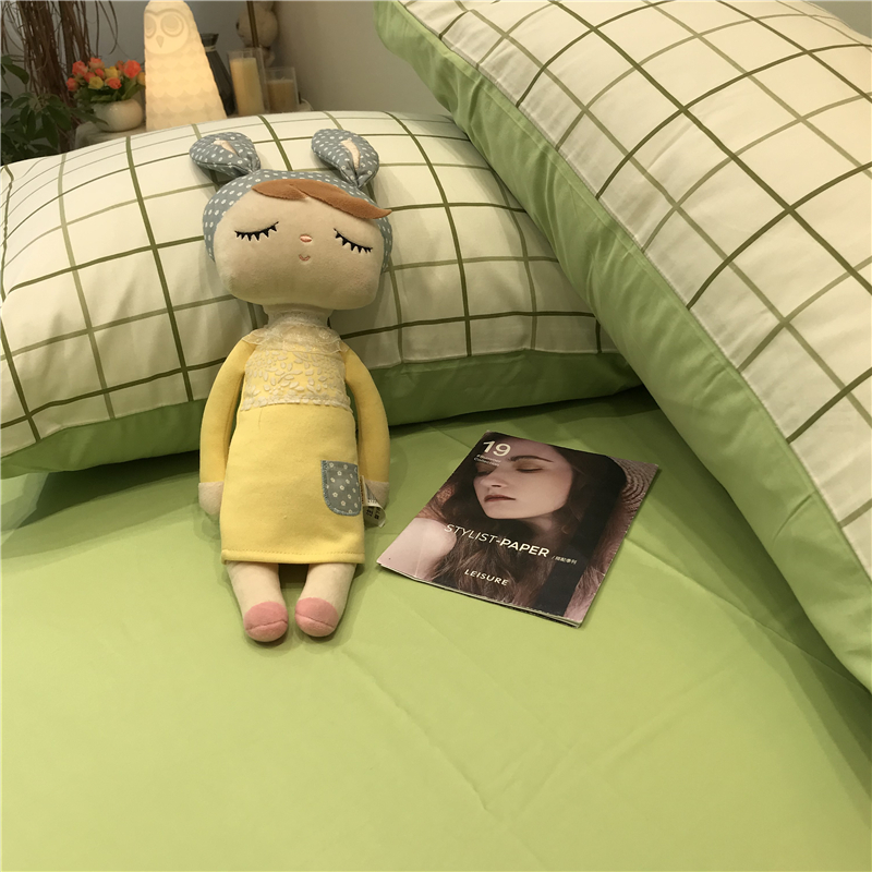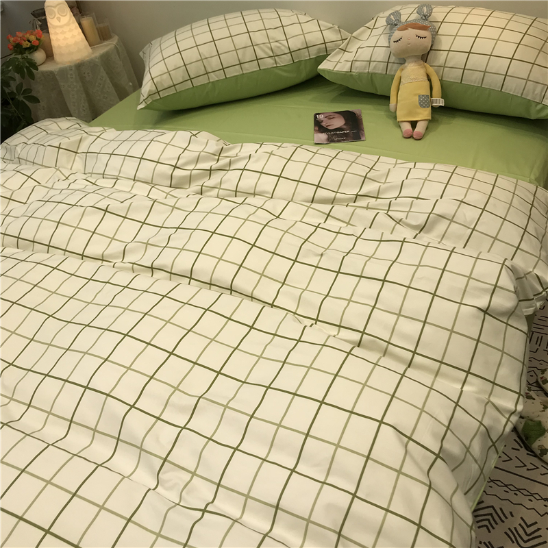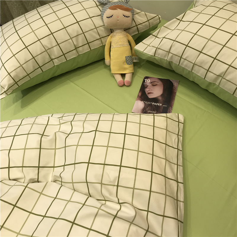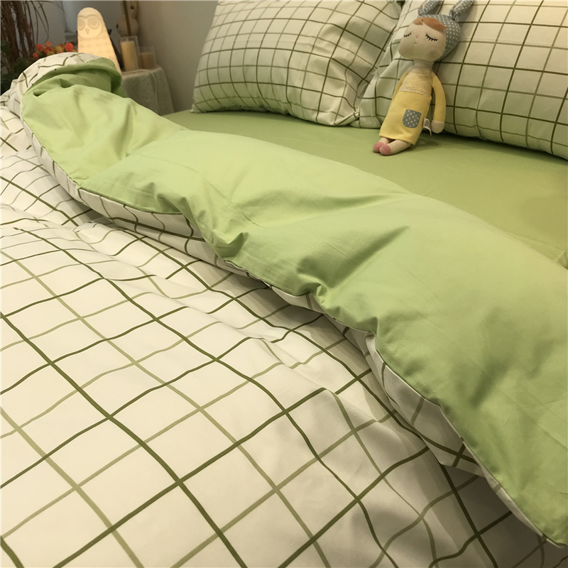 In small fresh green four pieces of cotton pure cotton plate are set in bed in bed single student dorm beds