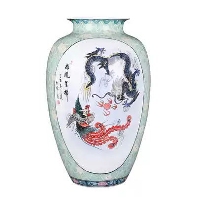 Oversized vase decoration National teacher Sun Xinshui entered the room disciple Xiao Lihuichun hand-painted dragon and phoenix auspicious vase