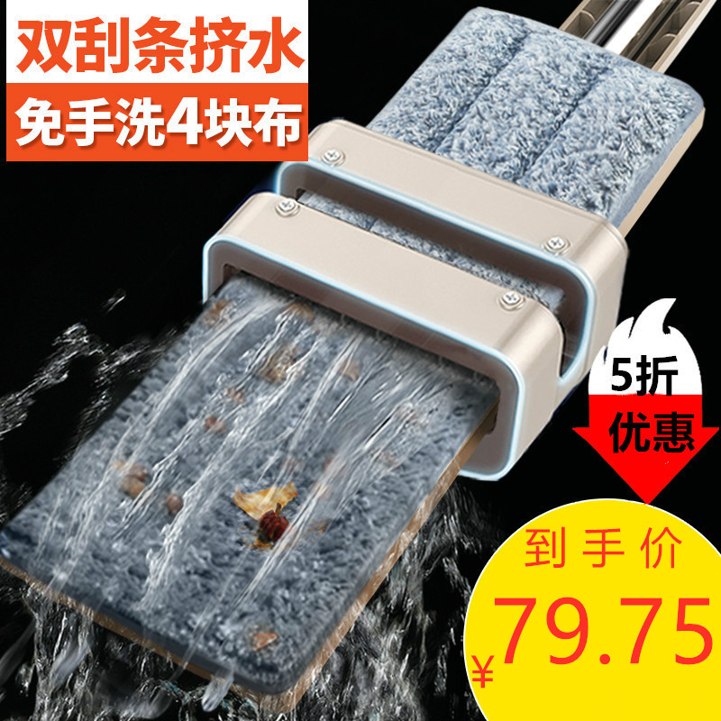 Hand-free flat mop wooden floor household lazy dry and wet kitchen living room one-drag two-purpose floor mop net