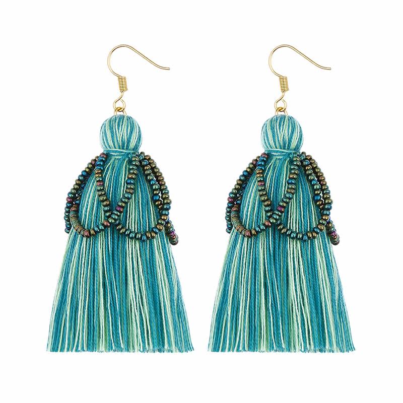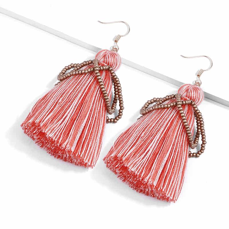 Ethnic earrings women's European and American bohemian personality earrings 2020 original handmade cotton thread rice beads tassel earrings