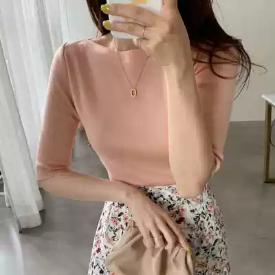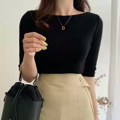 Ice silk knitwear women's short sleeve T-shirt 2021 summer new thin temperament loose thin bottoming foreign pie top