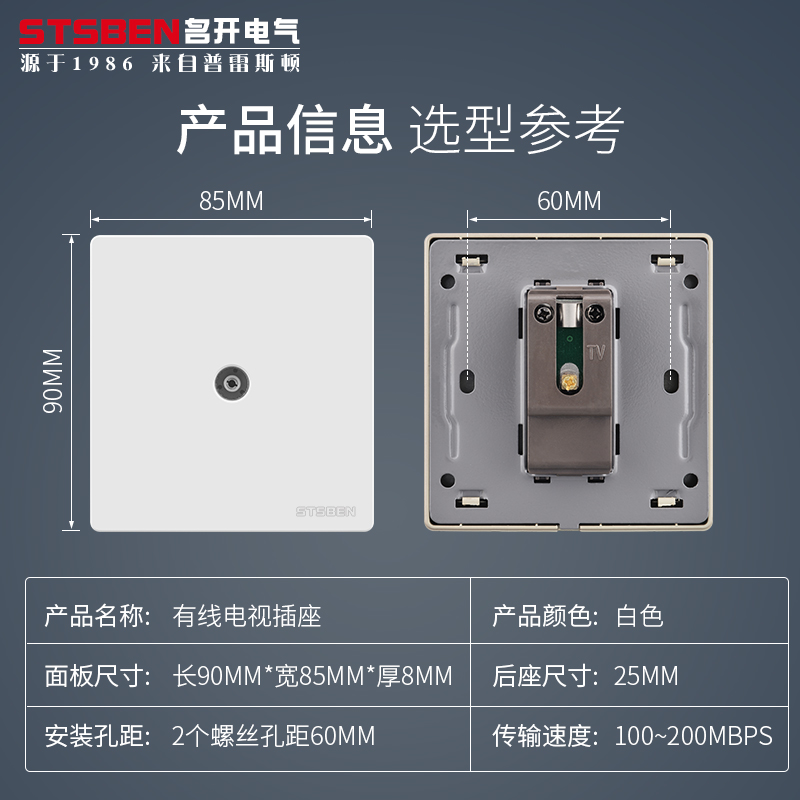 Mingkai Electric Type 86 Wall Hidden Switch Socket Panel Closed Circuit TV Panel One-digit cable TV socket