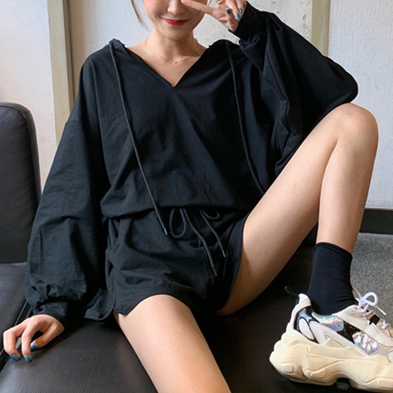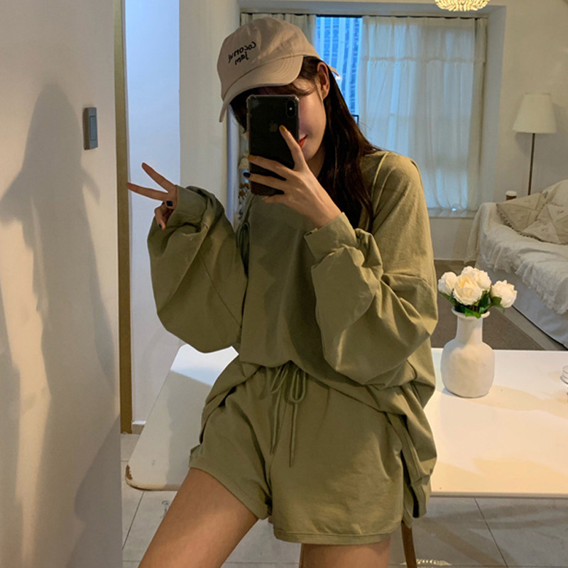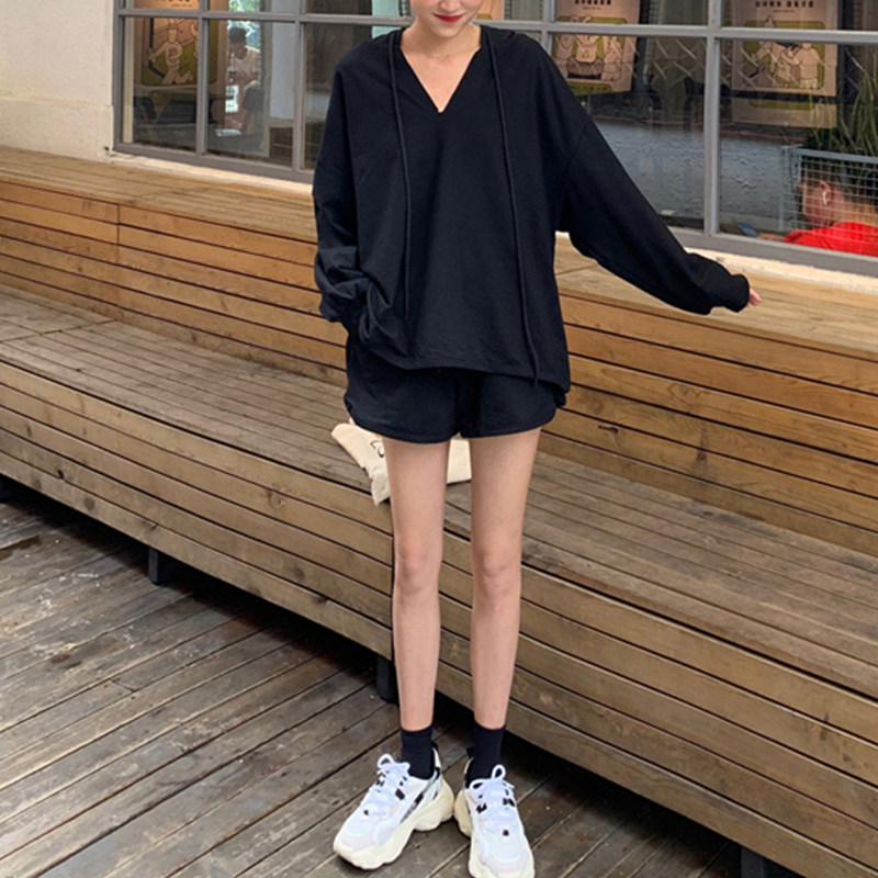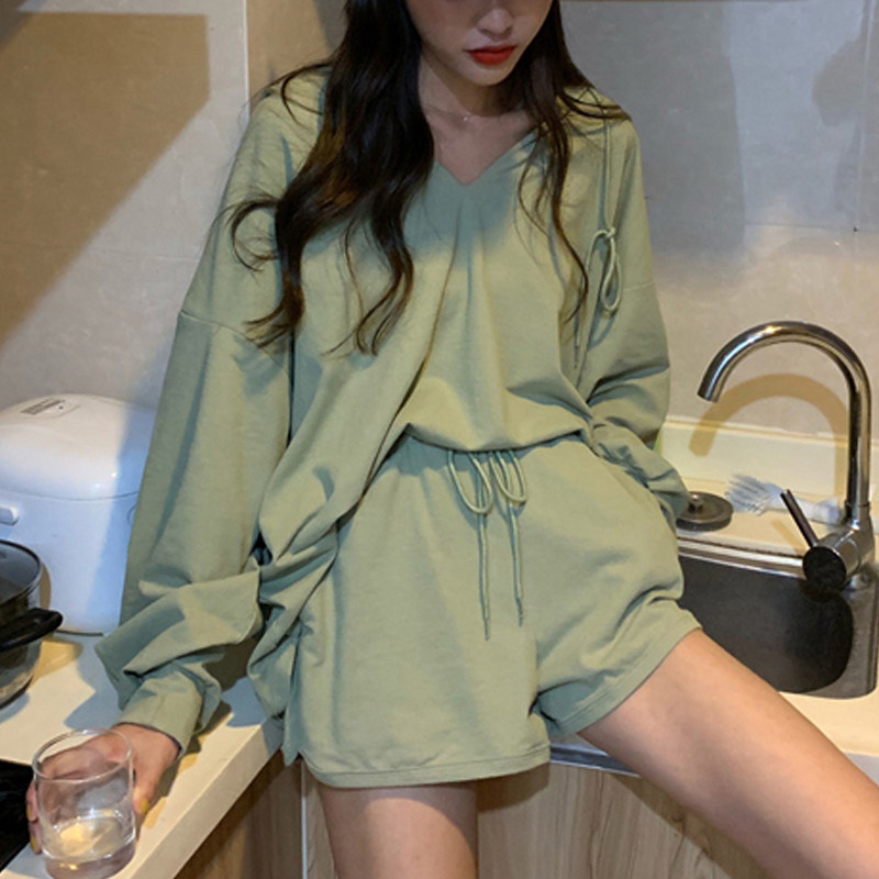 Black-Sweater Shorts Suit Tea Green-Vee Shorts Suit