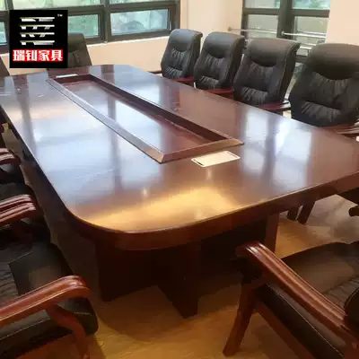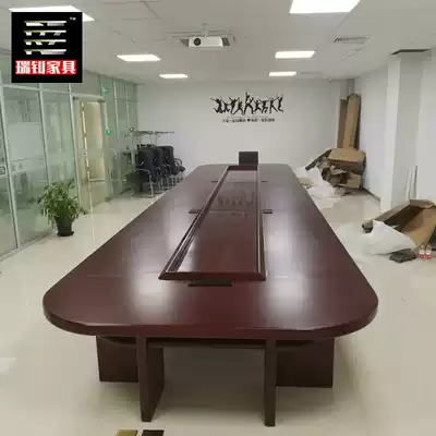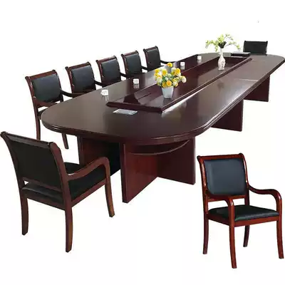 Large oval conference table long table multi-person meeting table stickers walnut wood skin paint Table Table Table and Chair combination
