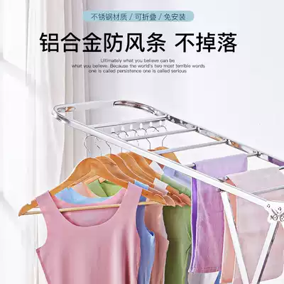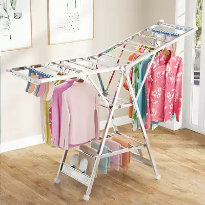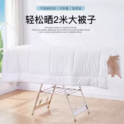 Stainless steel drying rack rod floor folding household quilt artifact indoor and outdoor baby children hanging cool clothes balcony