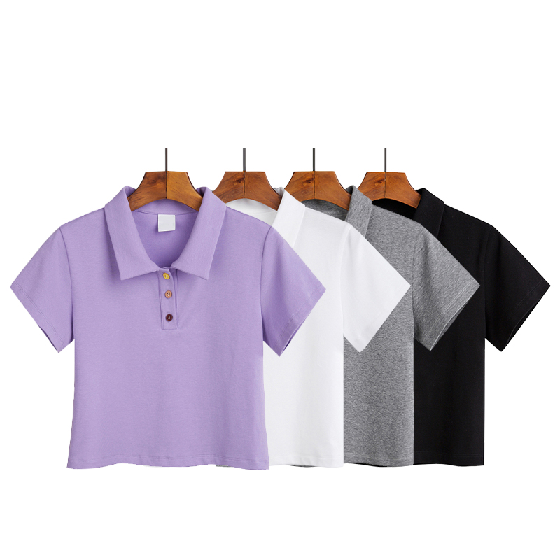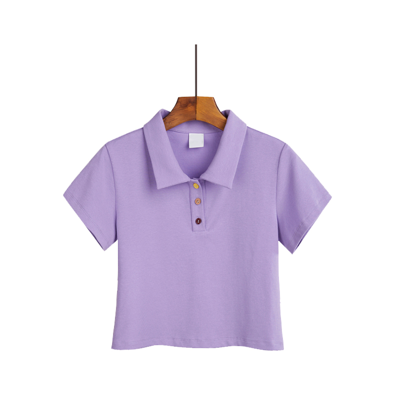 lapel polo shirt purple short-sleeved t-shirt women's short 2021 spring and summer new high-waisted loose taro purple top ins