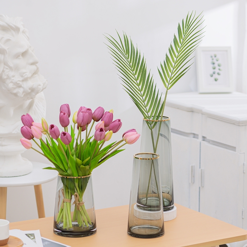 Light luxury gold transparent glass vase dry flower room flower decoration creativity simple Nordic water flower