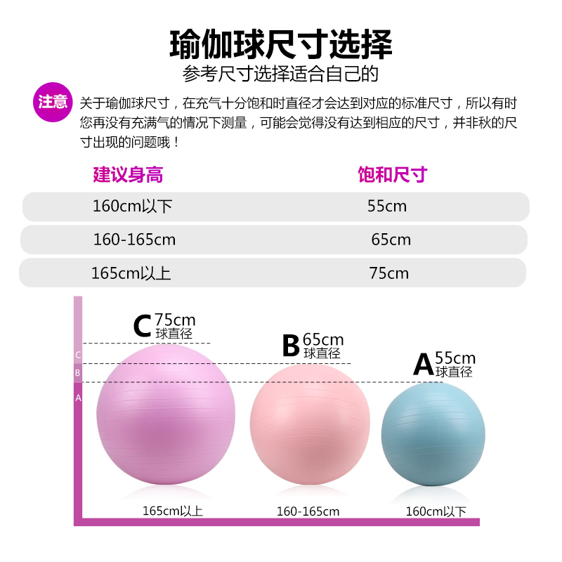 65cm (height 160-165cm) more yoga ball size