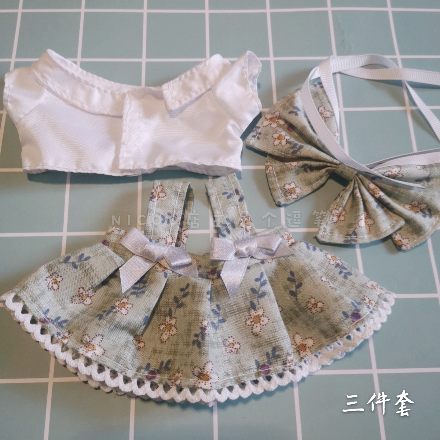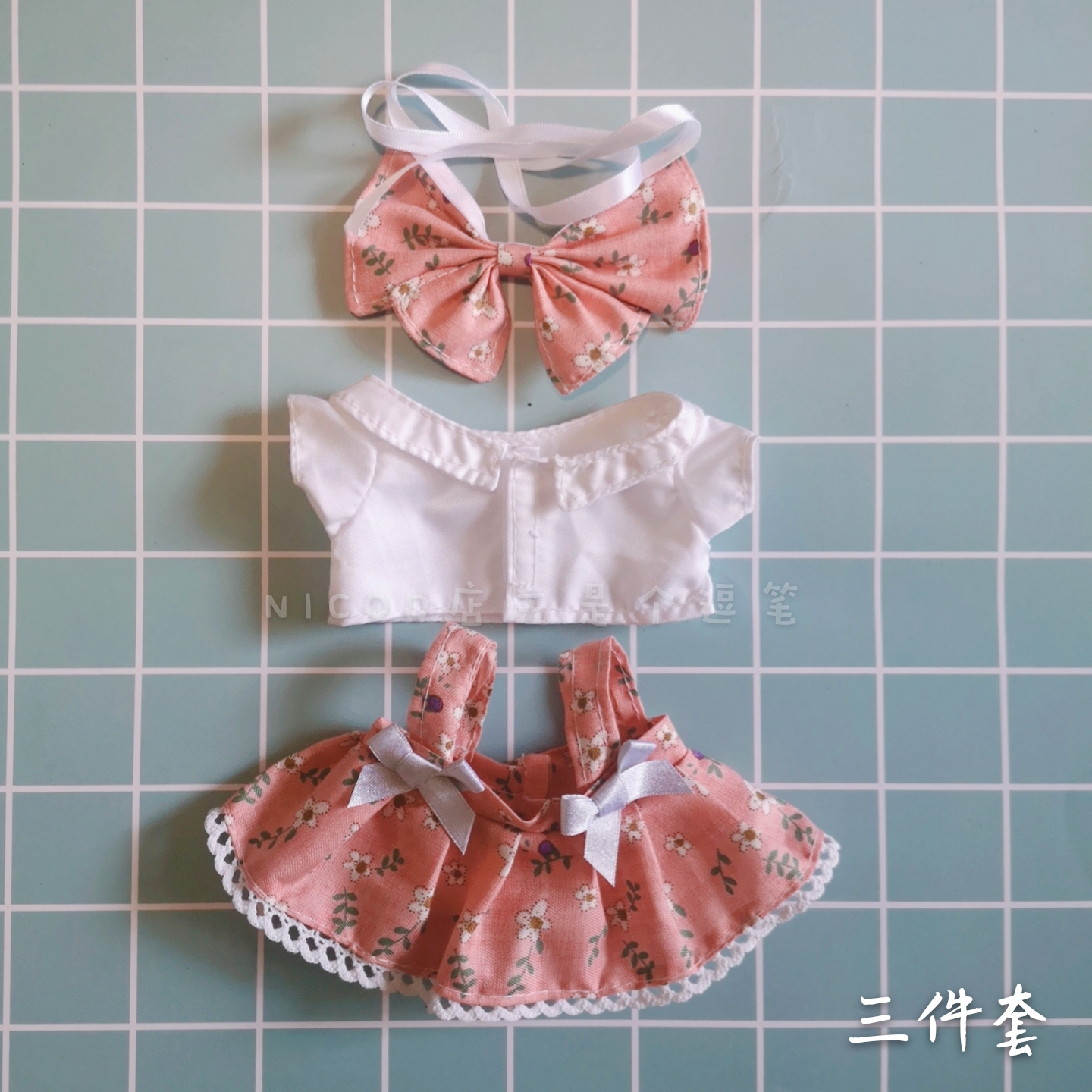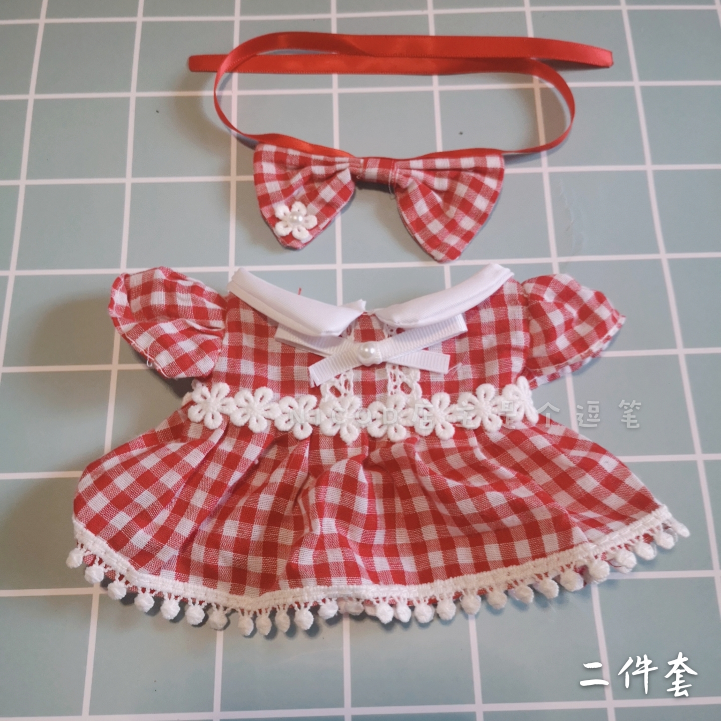 (Baby) 20cm doll skirt red plaid watermelon red green floral skirt Hair band three-piece bow