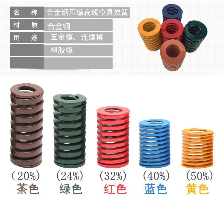 Mold spring imported alloy steel rectangular flat wire spiral high temperature resistant yellow blue Lanlan red green brown tea color Zhejiang spring