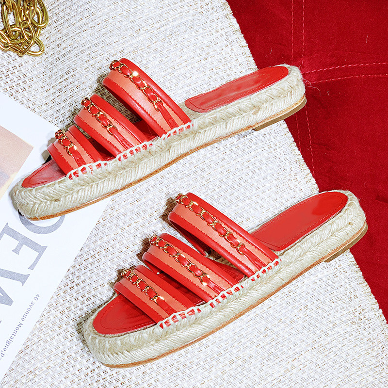 Special price clear cabin small fragrant wind fisherman shoes female summer flat bottom one foot pedal sloth grass knitted sandals sandals semi-trailblared slippers