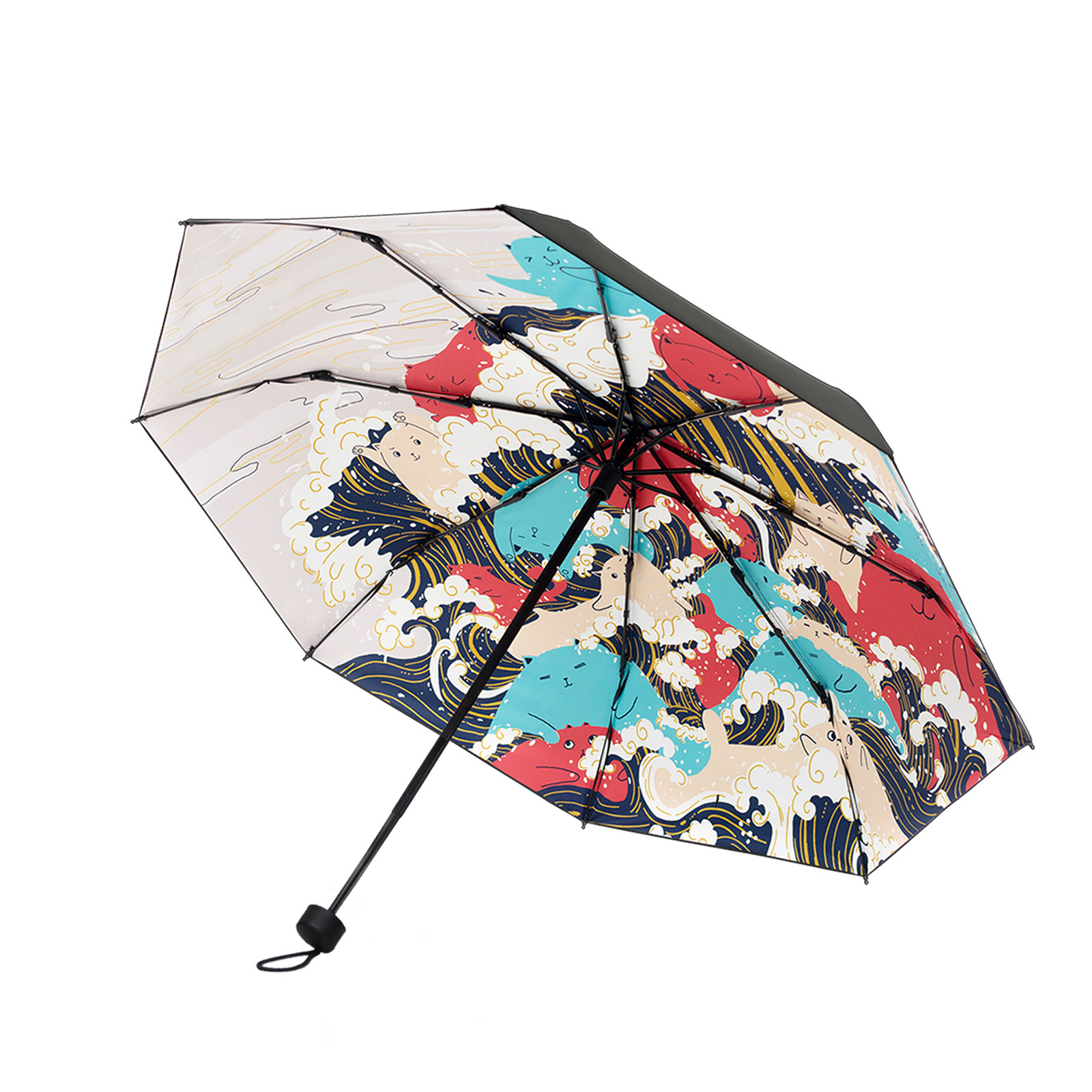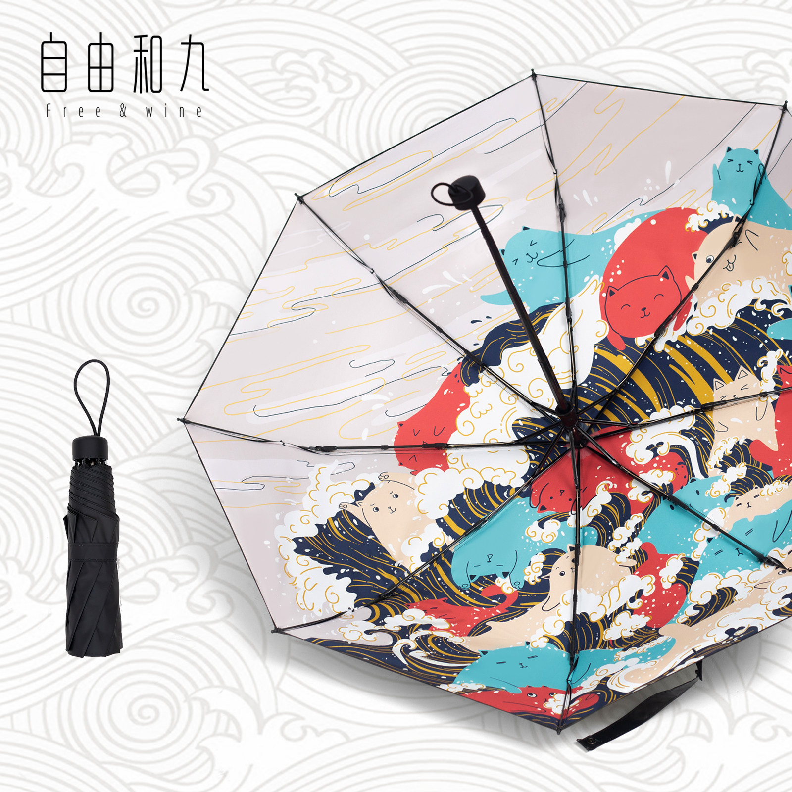 Free and Nine Cat Wave Sun Umbrellas Creative Personality Sunny and Umbrella Sun Protection Against UV Women Black Rubber Beach Umbrella