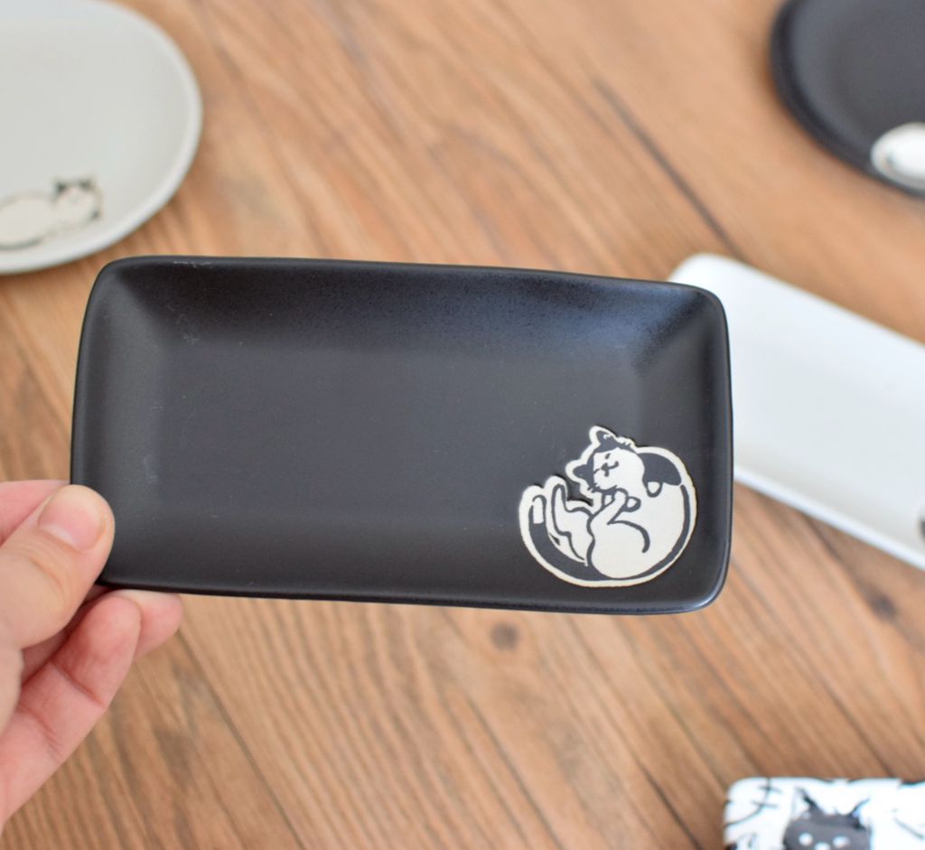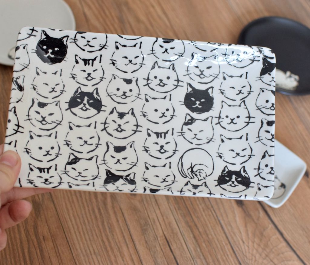 Cat head plate 22*13cm black small rectangular plate 14*7 5cm beige small rectangular plate 14*7 5cm beige small disc diameter 13cm black small disc diameter