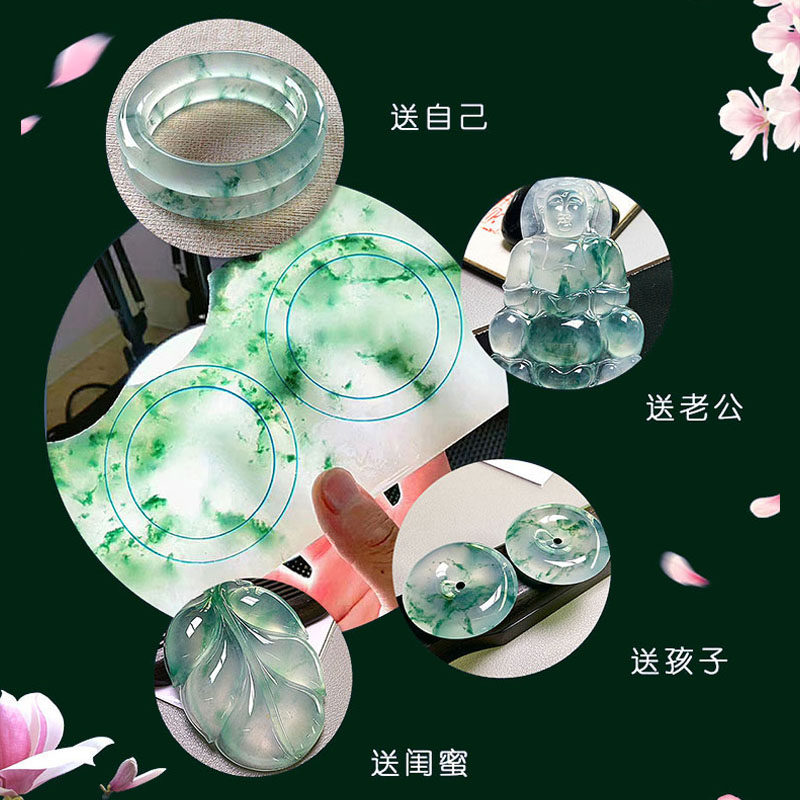 Myanmar emerald raw stone jade bracelet female half-minder sheet material ice seed floating flowers yang green Guifei natural custom