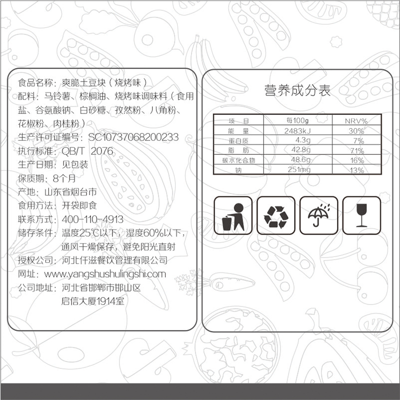 Potato palm oil barbecue flavor seasoning edible salt monosodium glutamate white sugar cumin powder star anise powder pepper powder cinnamon powder