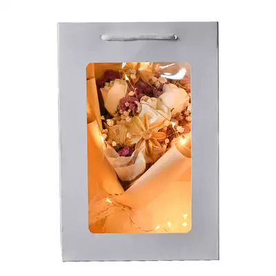 Sunflower Wenxin orchid window gift bag LED light sunflower rose window gift bag LED light powder Carnation powder do not open window gift bag LED light pink rose powder do not open window gift bag LE
