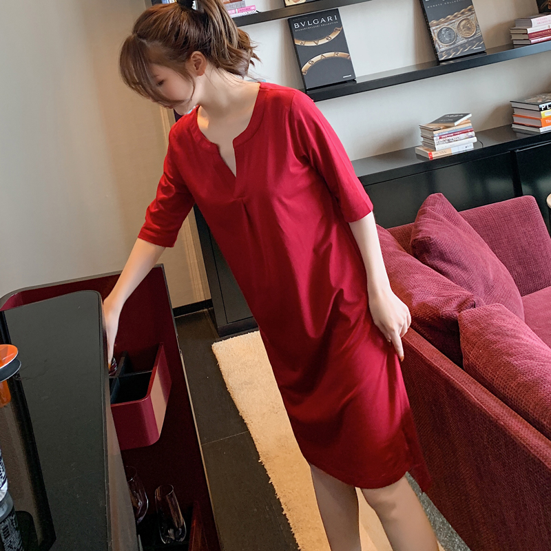 Solid color Modal cotton nightgown women Summer sleeves small sexy V collar ladies pajamas simple can wear home clothes thin