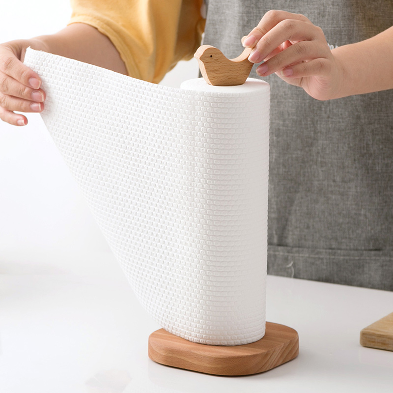 Household beech roll toilet paper storage shelf Kitchen paper towel rack shelf countertop solid wood vertical toilet paper roll toilet paper rack
