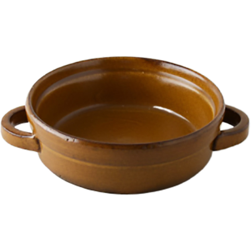 Japanese imported Studio M high temperature resistant rough pottery binaural Mini small casserole Western soup bowl Roasting bowl oven baked rice