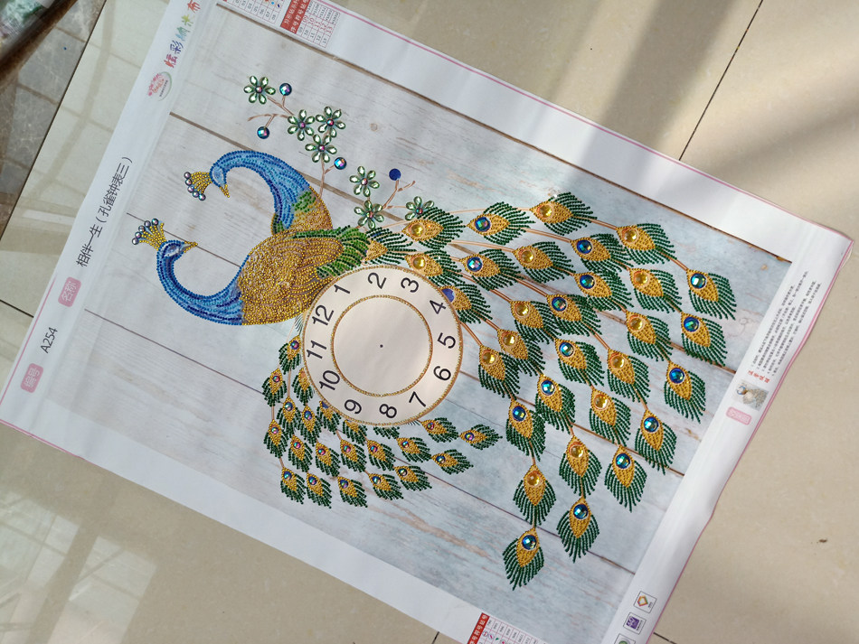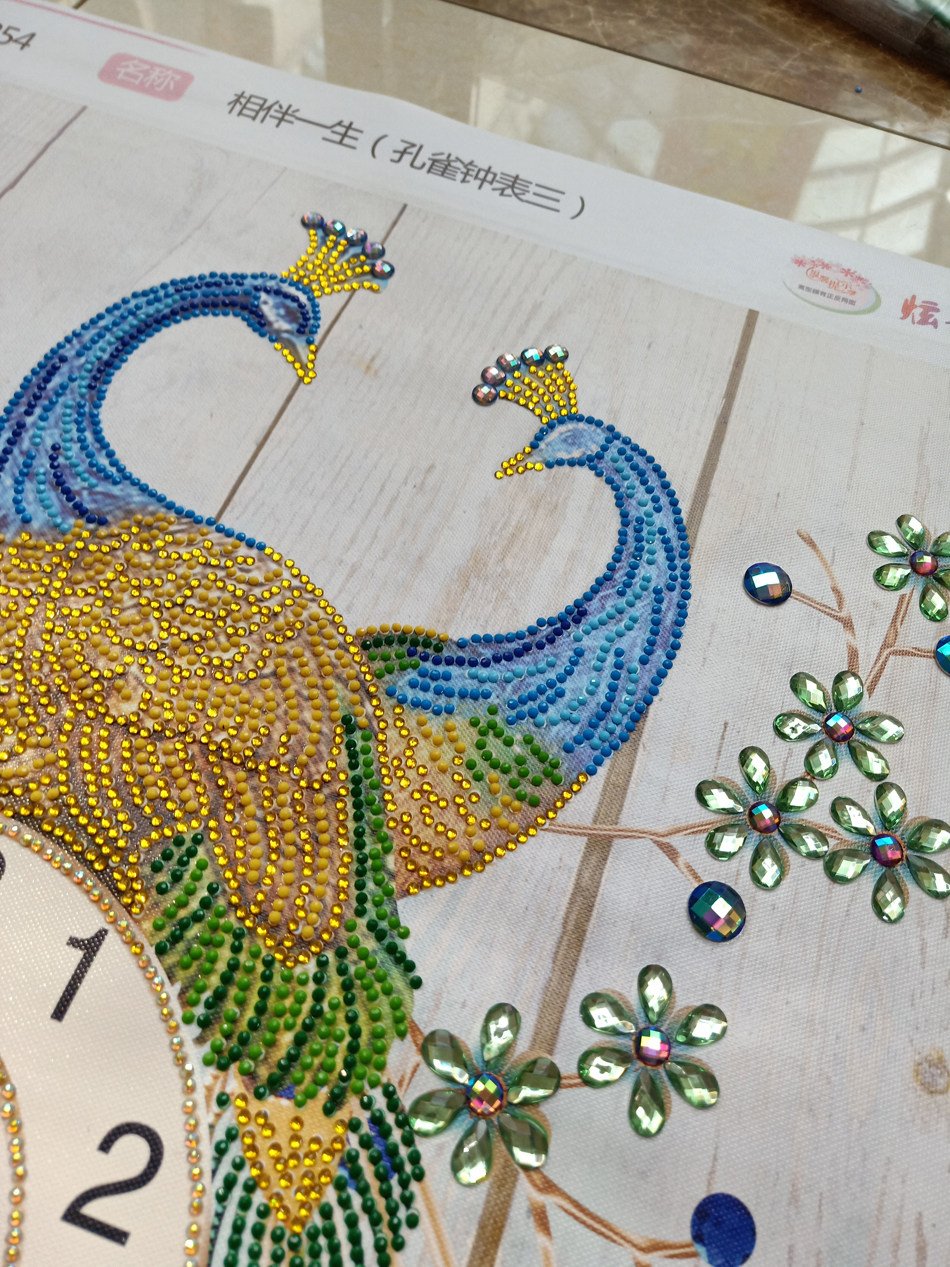 Pasted diamond painting finished watch peacock version special-shaped diamond non-full diamond restaurant diamond embroidery living room new clock