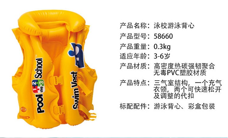 Original INTEX children's inflatable life jacket swimming vest swimsuit air chamber adjustable swimming equipment