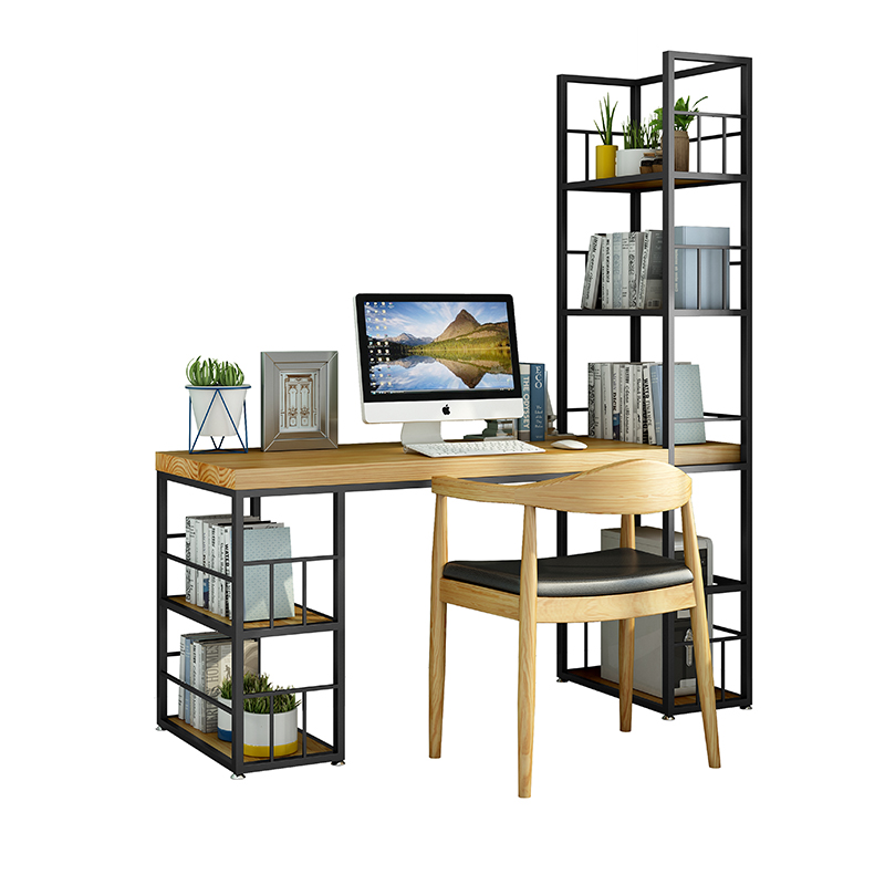 Solid wood desk bookshelf integrated corner desk office Nordic loft bookcase modern desktop computer desk