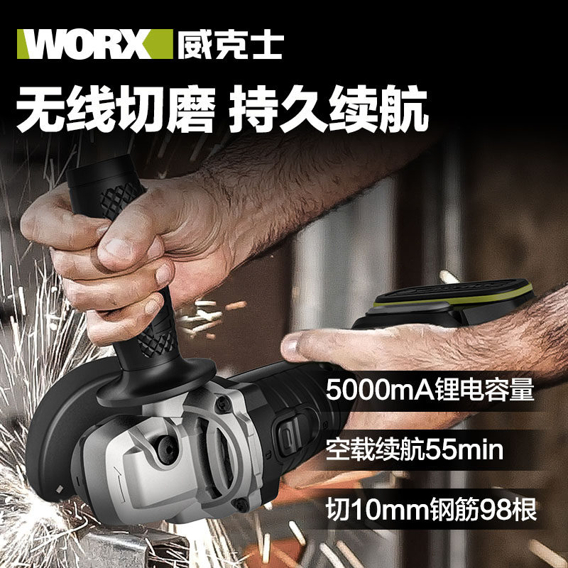 Wex charging angle mill WU808 High power lithium battery grinding machine 20v brushless motor hand grinding cutting machine