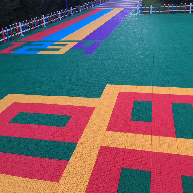 Suspension floor kindergarten outdoor anti-slip groundbreaking plastic floor lock on basketball court playground