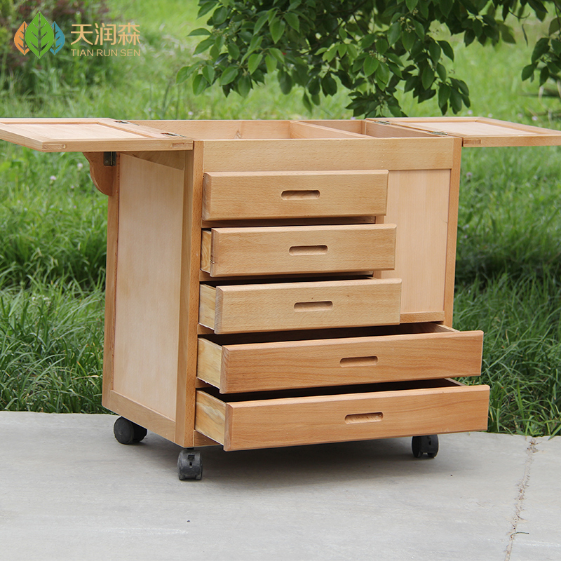 Heavenson Oil Painting Car Cabinet Red Beech Wood Five Drawer Type Drawing Car Painting Cabinet Oil Painting Tool Car Toolbox Fine Art Tool Storage Multifunction Storage Car Toning Car Toning Containing Painting Box