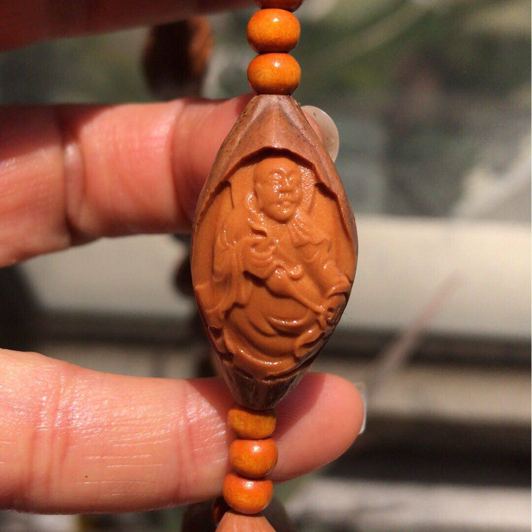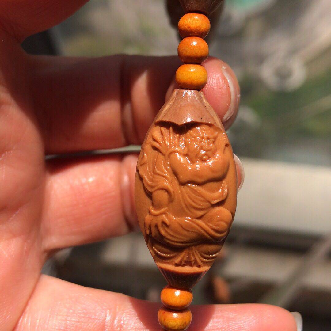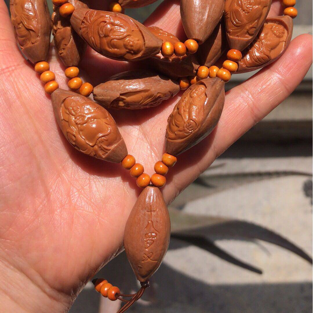 Wen played olive core hang with the original skin eighteen Luohan long string of 18 Luohan necklace olive core carved man