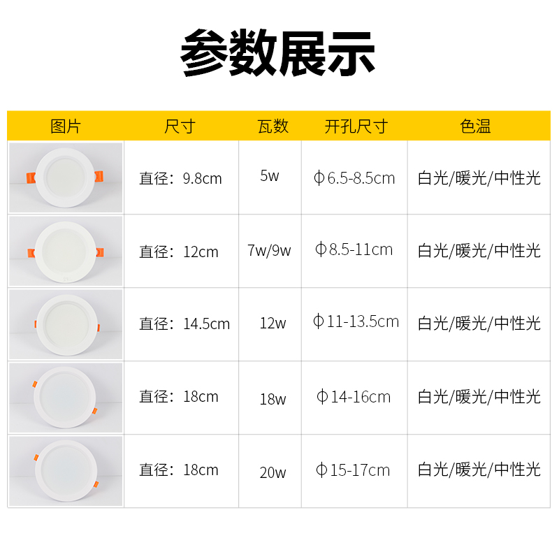 2 5 inch (hole 7-8 5cm) 5 watt white light 2 5 inch (hole 7-8 5cm) 5 watt warm light 2 5 inch (hole 7-8 5cm) 5 watt neutral light 2 5 inch (