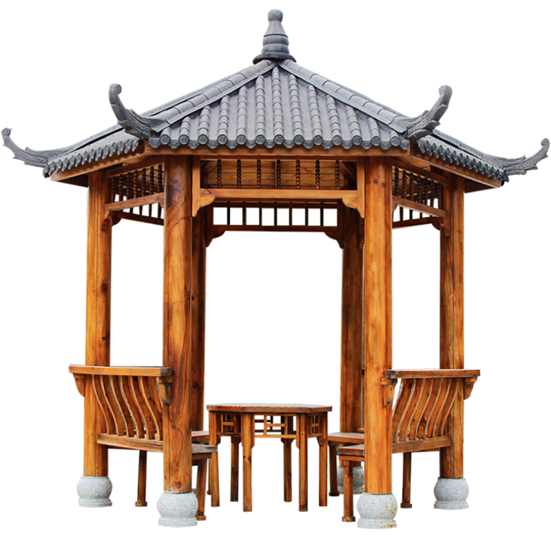 Anti-corrosion wood outdoor gazebo four corners hexagonal ancient building